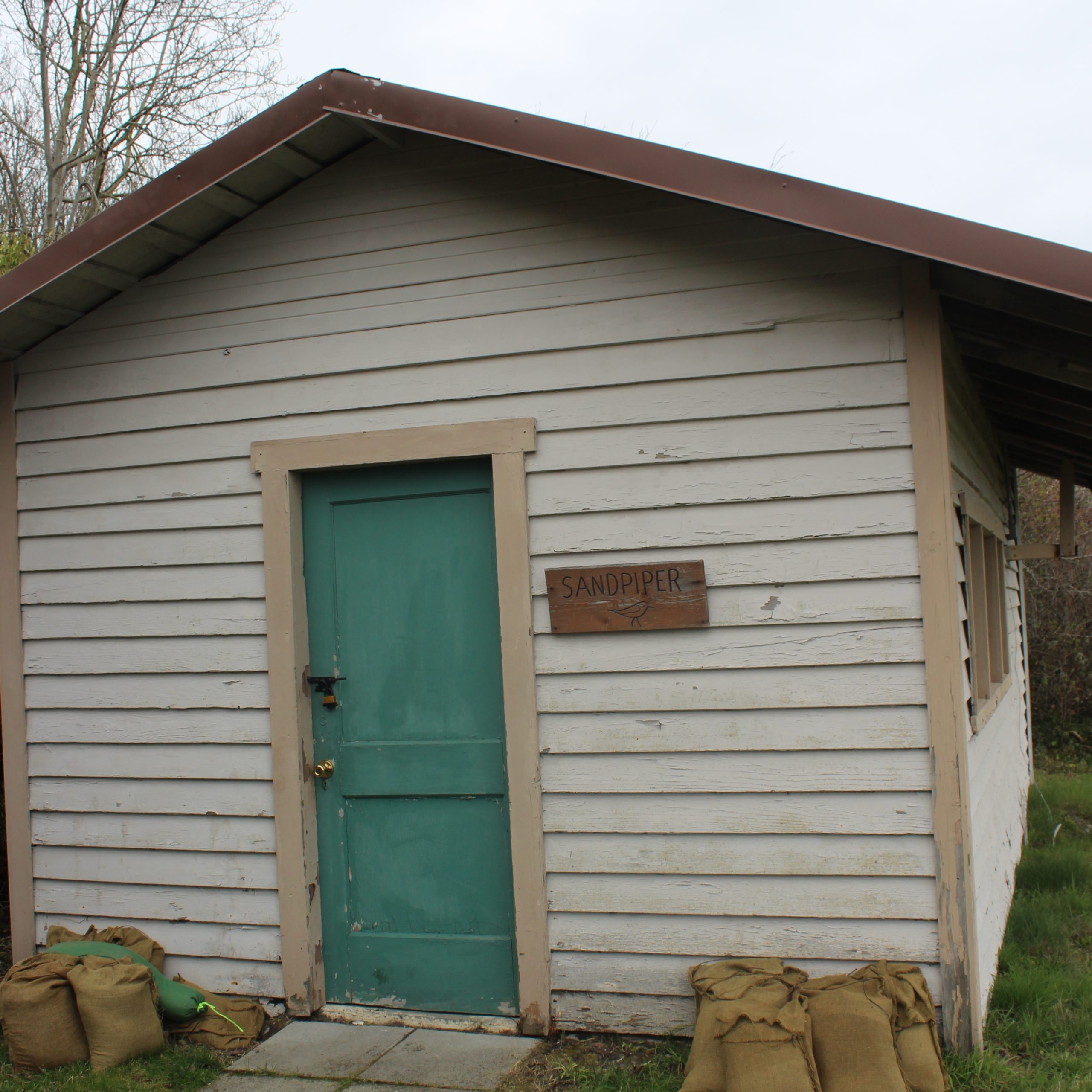 $200/weekend (4 people max) – Sandpiper has a 3/4 bathroom, and a sleeping area that contains two standard camp bunk beds. If you rent Sandpiper, your cooking will need to be done outside in one of our communal fire pits, or over a camp stove.